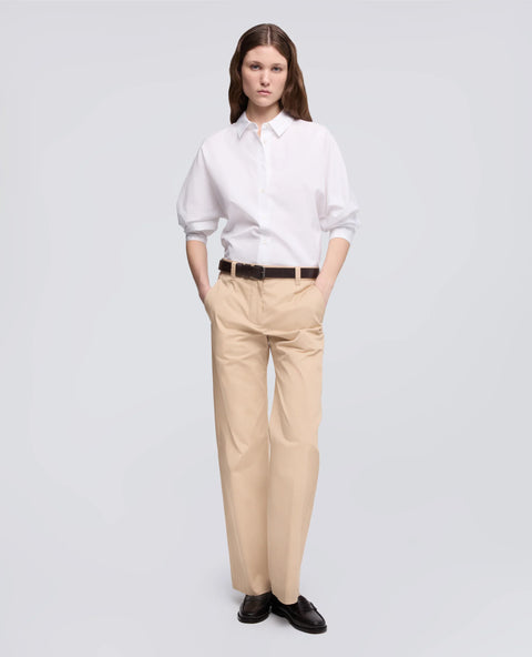 Classic trousers in micro cotton twill, with button and metal zip fastening. French pockets on the front, slanted pockets on the back. Straight leg and regular fit.