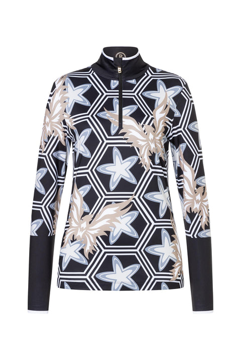 The contrasting design print characterises the Amira first layer as an eye-catcher for alpine outfits. The zip on the stand-up collar with zip garage offers extra comfort - made from breathable technical fibres with stretch. Collector's item as a limited edition of the Heritage capsule collection 2025: Amila parka, Amika ski trousers, Amira first layer, Amia and Amie ski jackets and the Shannon jumper.