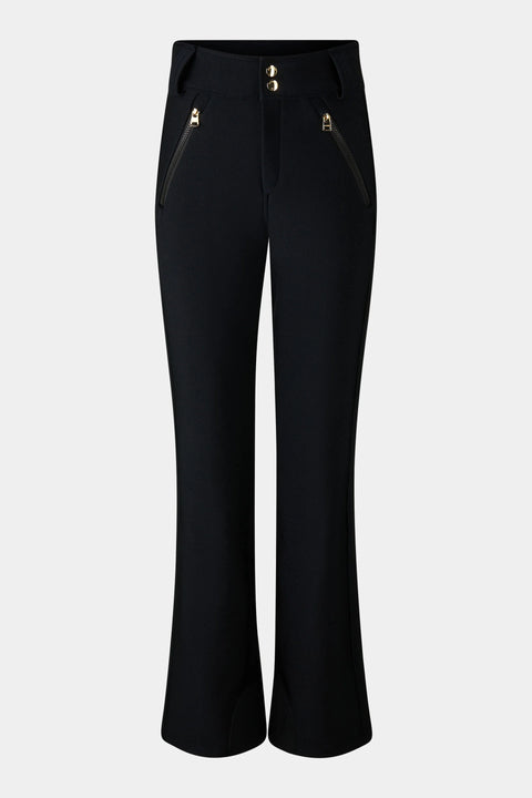The Hazel ski trousers are characterised by their water-repellent softshell fabric with a warm fleece lining, complemented by trouser leg cuffs with edge protection and a snow guard. The side pockets and the fastening with press stud, hook and concealed zip emphasise the design. Modern signature accents provide an iconic finish.