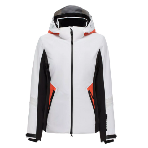The Speed Demon Lab DomeAir™ Pro Jacket WMN boasts the perfect combination of performance and technical features – this new women's jacket is designed to guarantee extremely high levels of performance, and engineered to tackle the most extreme descents. The Speed Demon Lab DomeAir™ Pro Jacket WMN is equipped with innovative DomeAir™ padding, tested to withstand the most extreme conditions in the intense cold of Antarctica. This patented D-Air Lab padding technology features a mesh structure of domes that traps air to offer superior insulation and breathability. Protection from even the coldest temperatures is ensured by the Dermizax®EV four-way-stretch external membrane, which offers 20,000 mm of waterproofing and 20,000 g/m²/24h of breathability. Through the integration of the DomeAir™ structure, the membrane’s breathability potential is fully achieved. The inserts positioned on the shoulders are made of stretch and ergonomic material – Axial stretch fabric – derived from the Dainese motorcycle world, which allows it to perfectly adapt to the wearer’s body, ensuring freedom of movement. In addition, the inner stretch lining along the back further contributes to make the Speed Demon Lab DomeAir™ Pro Jacket WMN the ideal solution for skiers who want to push their limits without compromising on comfort. Practicality and comfort are guaranteed, owing to the waterproof zippers which keep the inside dry, plus two front pockets, a ski pass pocket, an internal pocket and large internal cargo pockets to keep everything perfectly organized. The adjustable drawstring at the bottom for a perfect fit and the adjustable hood complete the features of this technical jacket designed for top-level performance.