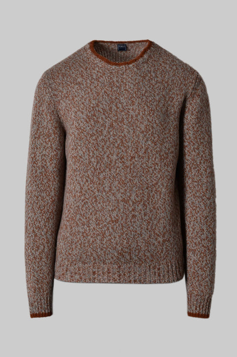 Crafted from a warm blend of baby alpaca and wool, this classic crewneck features tailored sleeves and distinctive contrast accents. The mouliné knit enriches the surface with a softly marled look, creating depth and movement in the design.