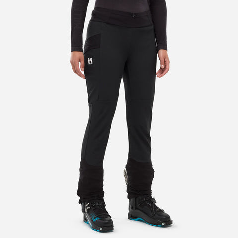 Their athletic, feminine cut includes a stretchy thigh pocket for keeping an energy bar close at hand. The bottoms of the legs are reinforced and designed for maximum efficiency. The rear buckles are easily accessible, and the gusseted zips allow us to move quickly. In low visibility conditions, the reflective Pierra Ment markings ensure that we are visible to others. Designed for performance, our ski touring pants are made in Millet factories.