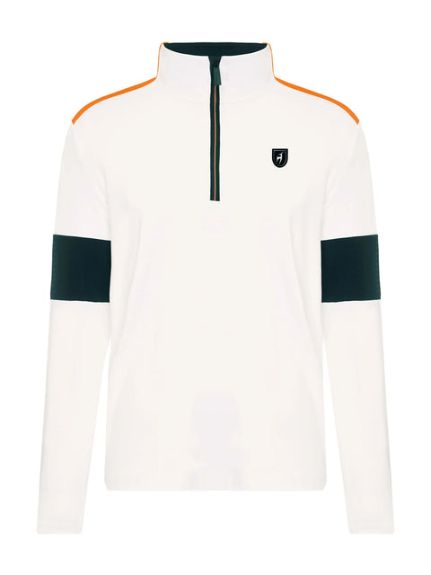 The VICTOR men’s first layer ensures high comfort due to its material properties. The functional jersey, made in France, is light, breathable, quick-drying, and offers high freedom of movement. Colour-contrasted inserts, and a two-tone YKK® zipper give this Toni Sailer base layer a sporty racing look that pairs perfectly with our jacket range.